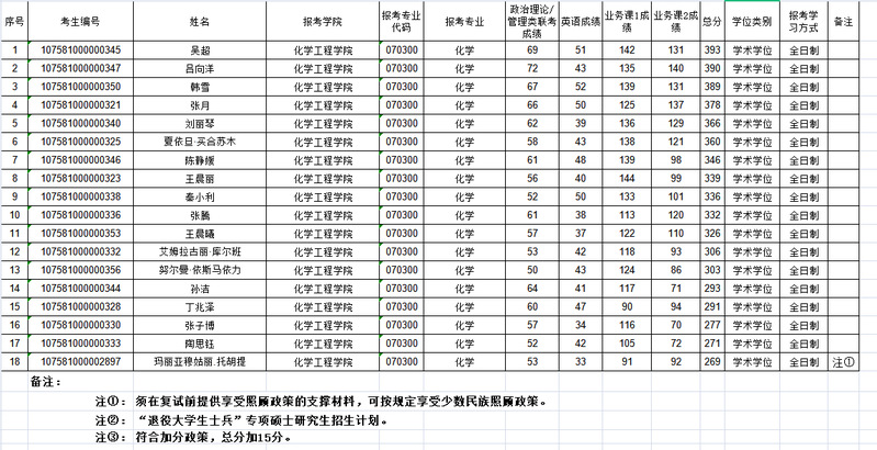 情色自拍 化学工程学院2021年硕士研究生招生考试一志愿考生复试名单
