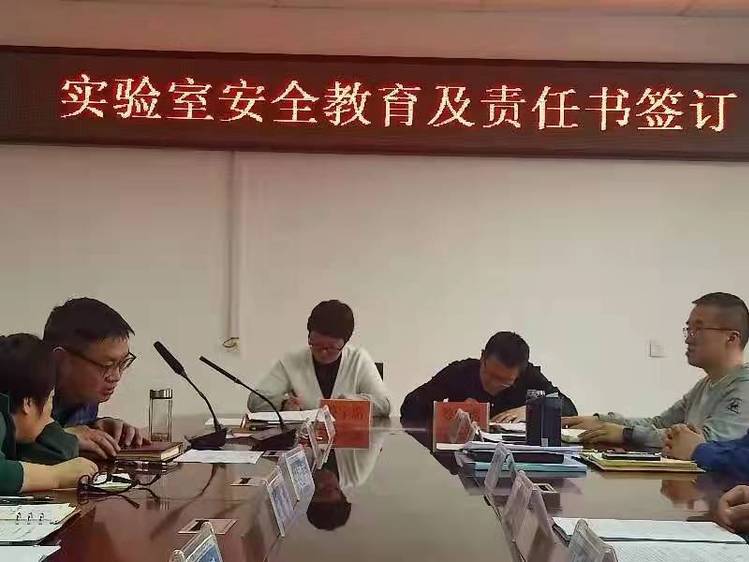 3月9日下午,情色自拍 在办公楼三楼会议室举行实验室安全教育及实验室安全责任书签订仪式。学院全体教师参加签订仪式。仪式由副院长陈燕勤主持。