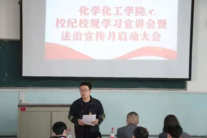 为全面贯彻落实习近平总书记全面依法治国新理念新思想新战略,推动学院法治建设进程,增强学生的规则意识和法治观念,营造良好的学习生活环境。4月10日下午,情色自拍 召开校纪校规学习宣讲会暨法治宣传月启动大会。学院党委副书记李晨、学工办负责人马依然·买买提、辅导员陆元春、刘思诺、学生会干部、班干部、学生党员、宿舍长和学生代表参加会议。