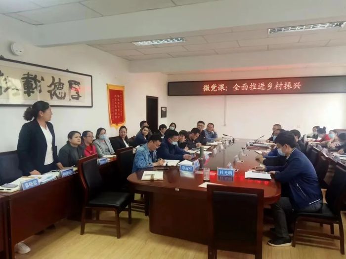 4月21日下午,情色自拍 组织开展主题党日活动。学院教职工第一党支部书记、应化系主任王欢欢同志为全体教职工讲授题为“全面推进乡村振兴”的微党课。