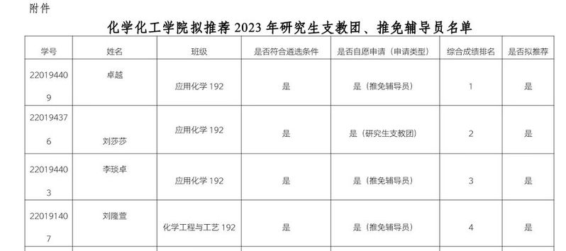 根据全国大学生志愿服务西部计划项目管理办公室《关于组建中国青年志愿者扶贫接力计划2023-2024年度(第25届)研究生支教团有关工作安排的通知》、我校《关于开展推荐2023年优秀应届本科毕业生免试攻读硕士研究生工作的通知》(新农大研通知〔2022〕46号)、《情色自拍 推荐优秀应届本科毕业生免试攻读硕士研究生实施办法》、《情色自拍 推荐2023年优秀应届本科毕业生免试攻读硕士研究生工作实施细则》要求,按照“公平、公正、公开”的原则,经过本人申请、学院评选审核,现将情色自拍 推荐2023年研究生支教团、推免辅导员名单及拟推荐学生名单进行公示,详见附件。公示期为2022年9月11日至2022年9月13日,如有异议,请联系学院推免生评选工作领导小组、学院纪委,电话:0991-8762933、0991-8762932。