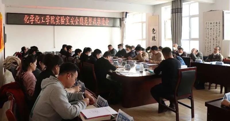 于3月1日下午在会议厅举行实验室安全隐患整改推进会,学院党政领导班子、全体教职工参加了会议。