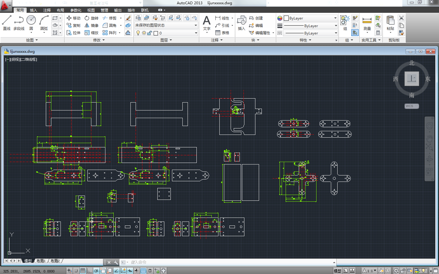 运用AutoCAD画出零件尺寸图,手工试制,确定具体尺寸,修改AutoCAD零件尺寸图;按照修改后的尺寸图用激光切割机切割板材制作零件,使用折板机把需要折弯的零件进行加工;如图4-1为使用AutoCAD设计画出的竞步机器人零部件图,并通过UG软件画出三维部件图,如图4-2为使用UG画出的关节零部件。