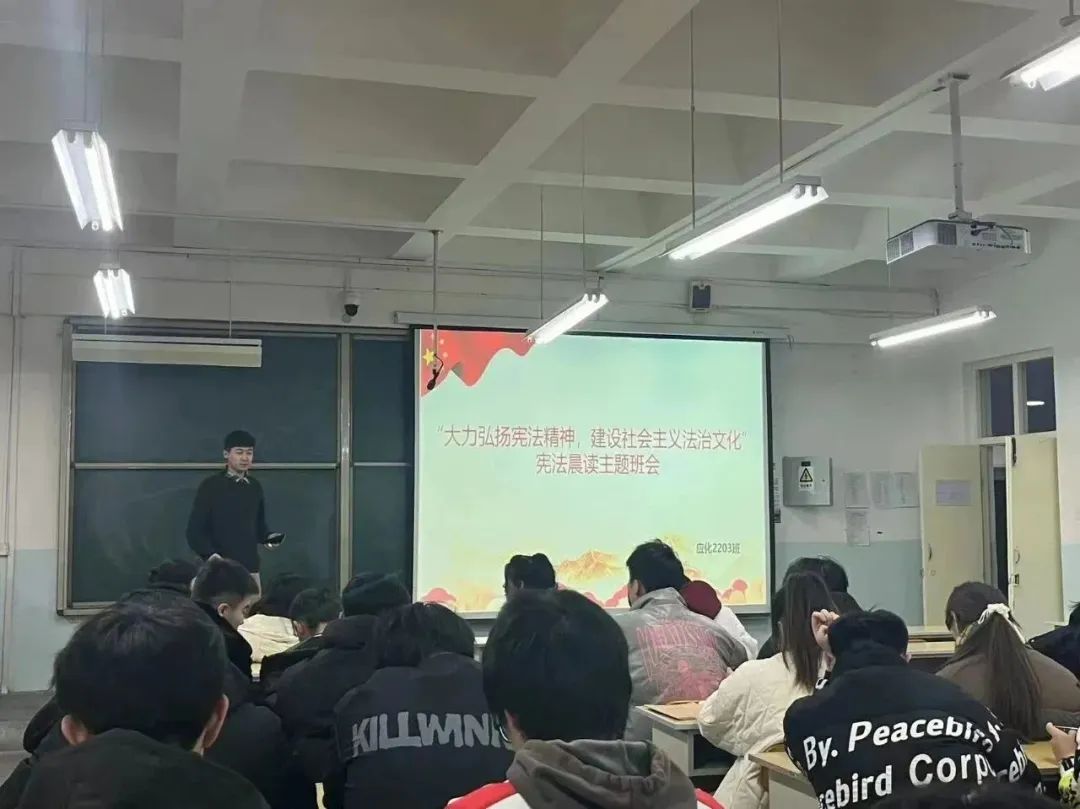 为全面贯彻党的二十大精神,大力加强宪法学习宣传,强化宪法意识,弘扬宪法精神,情色自拍 组织各班级于12月2-4日召开“大力弘扬宪法精神,建设社会主义法治文化”宪法晨读主题班会以及观看宪法晨读直播,情色自拍 全体学生参与本次活动。