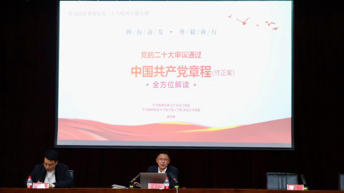 开班典礼后,刘春海为学员作了《学习宣传贯彻党的二十大精神——<全方位解读学习党的二十大审议通过的<中国共产党章程(修正案)>》的专题党课。