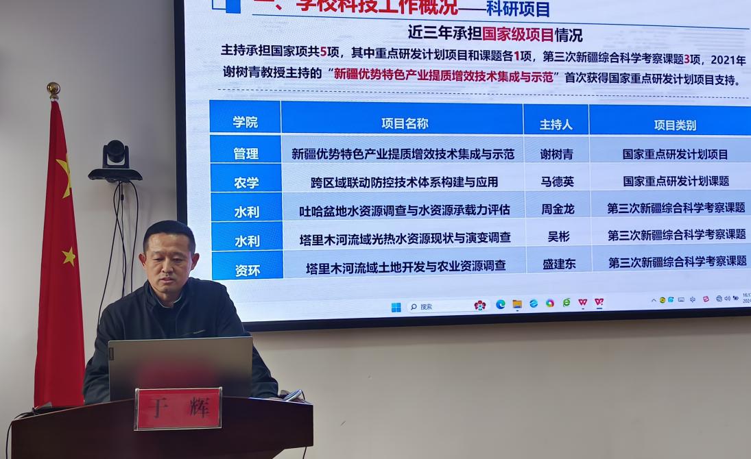 刘春海强调,做好今年的科技工作:一是要主动作为,高质量推进各类项目的谋划。切实加强调查研究,掌握社会需求,做好项目资源储备,教师尤其是青年教师要抢抓机遇,主动作为,做到有的放矢、精准发力。二是要协同创新,推进创新平台与团队建设。结合学院学科特色、教师科研方向及新疆区域发展需求,进一步拓展省部级科研平台建设,发挥平台在方向聚焦、团队建设和社会服务方面的积极作用。三是要拓展资源,不断打通社会服务的渠道。主动走出校园,积极拓展行业、企业和地方的科技合作,学院和教师要挖掘各类地方和校友资源,推动科技合作,务实高效地完成好各项合作任务,不断拓宽社会服务的广度和深度。四是要严格布局,全面推进有组织的科研。打造“反应迅速、组织有力、务实高效”的科研工作模式,做好科研工作目标任务的顶层设计和规划布局,推动各项目标任务落实落地。
